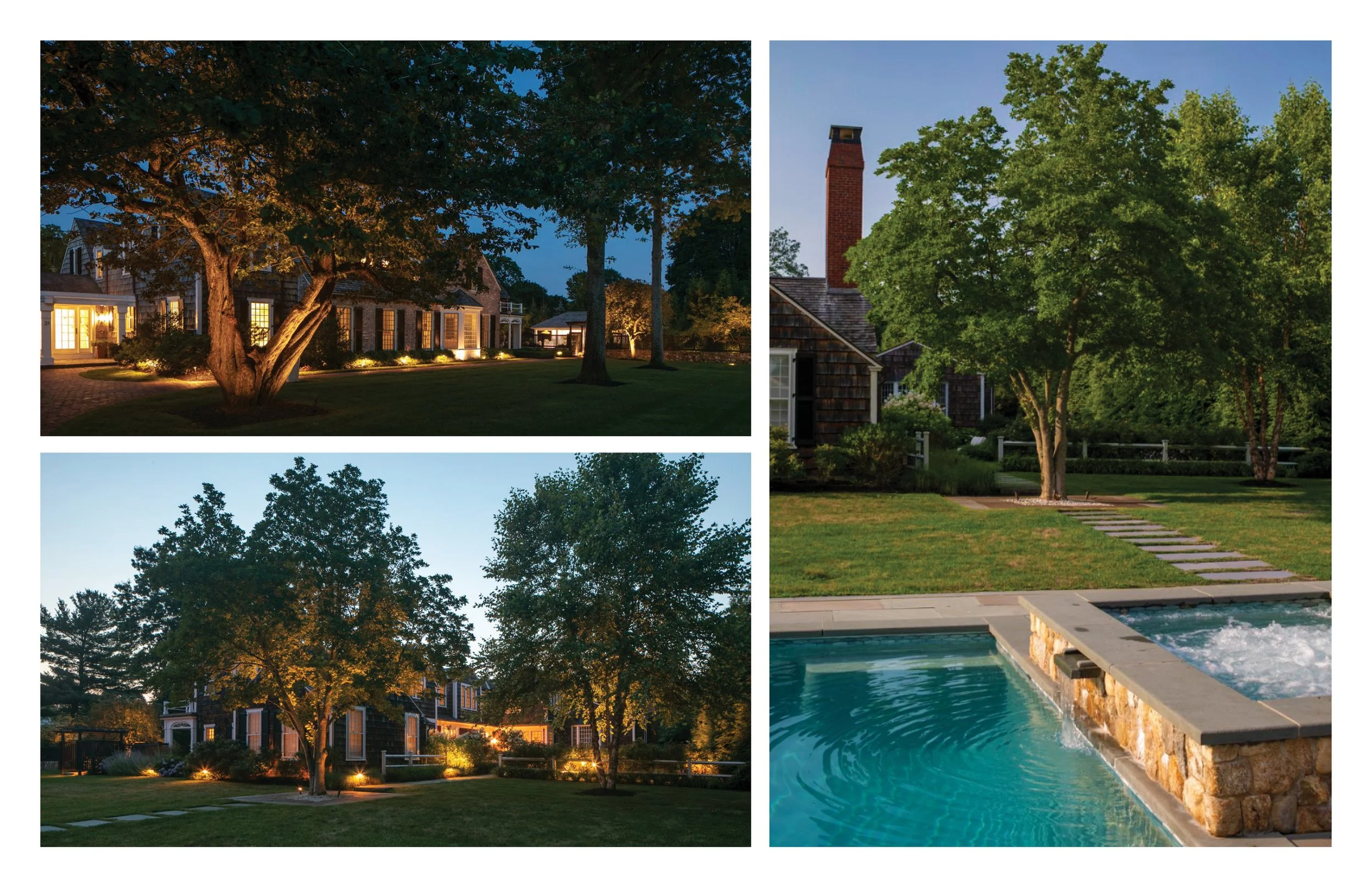 A landscape dotted with mature trees and timeless architecture, the design for Pear Tree Hill incorporated new outdoor living spaces while working with existing site defining characteristics.